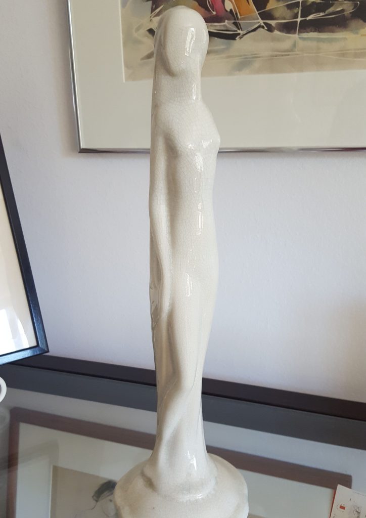 The initial thought we had was to research her valuables. She had told us through the years that certain items she owned may be worth a lot. So, I fell into an interesting research project. I started to photograph mom’s eclectic art objects she had collected over the years and I sent them to an auction house in Chicago. I forwarded photos of figurines, a handful of paintings and large fashion prints given to Ginny as a gift in the 1940’s. They had been purchased in France. I sent along photos of jewelry pieces including necklaces, brooches and hat pins.