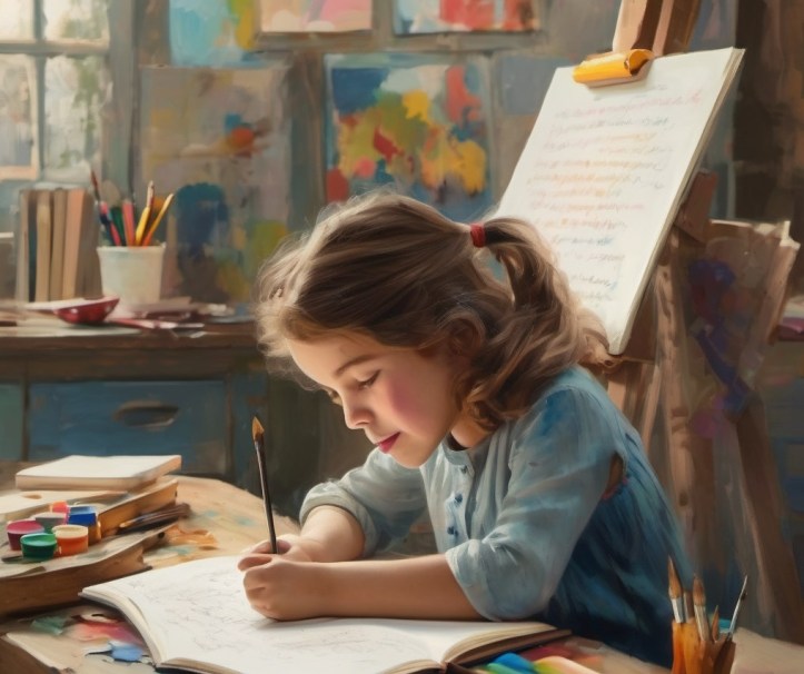 Last February, I took my first foray into the world of AI and wrote a post about the experience. I had used ChatGPT to write a story about a girl, art, trauma and writing. It was okay, but repetitive. I had tried PIXLR next, which is one of the many AI image generators, and prompted it to search the same words. Here was one result: