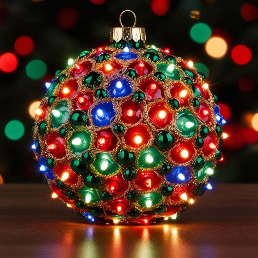 My first prompt to capture a feeling was β€œChristmas ornament made up with colored lights.” I was surprised, but not in a good way! In it’s defense, it did create exactly what I wrote. Its shape reminded me of a cloved orange.