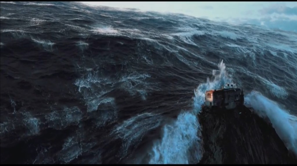 There is no proof that a 100-foot wave took the ship, other reports that surfaced showed waves at 39 feet with sustained winds of 56 mph with gusts to 75 mph. The movie’s version of the wave, however, absolutely towered over the ship and was truthfully almost disturbing to watch because it felt so real and you knew they weren’t going to make it.