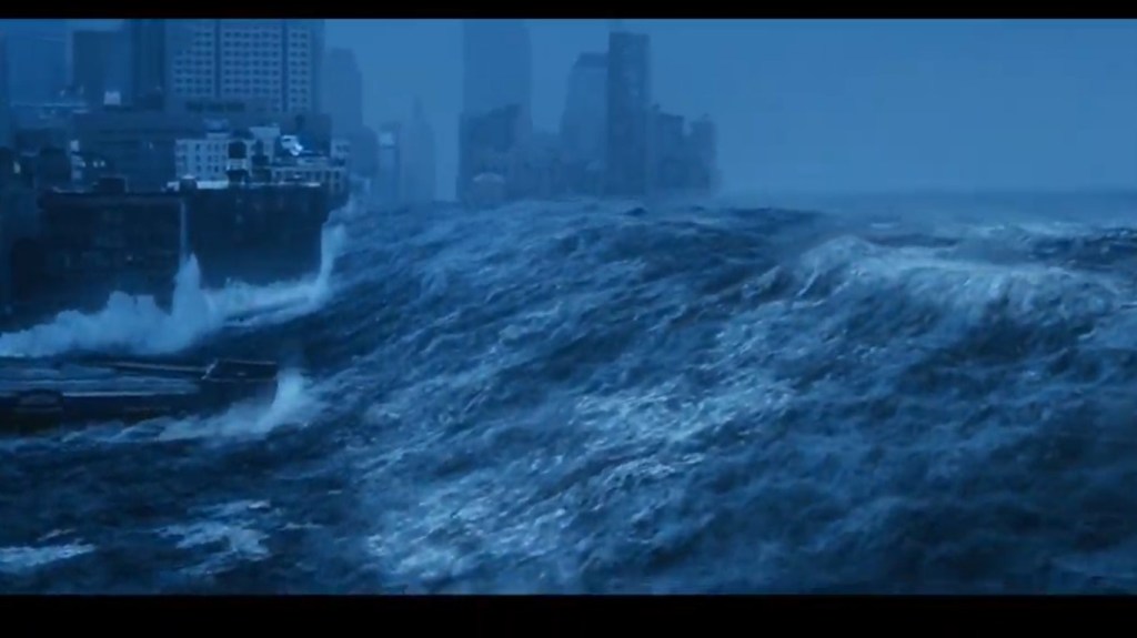 This is from the movie 2012 which, ironically, came out in 2009. The earth’s crust has become unstable and the planet is headed towards extinction. This particular wave is pouring over the Tibetan mountain tops. If you remember, based on the Mayan calendar, 2012 was a year marked as the end date to a 5,126-year-long cycle. This movie is a loose homage to that prediction.
